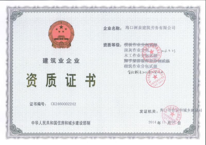 ??跇淙ㄖ趧?wù)有限公司成立于2011年,公司位于???,其前身是一家專業(yè)建筑施工隊,自2004年即開始在海南從事建筑勞務(wù)施工。自成立至今,公司已經(jīng)擁有一支科學(xué)管理、質(zhì)量過硬、能打硬仗,搶工期的專業(yè)隊伍。能獨立承擔(dān)大中型工業(yè)與民用建筑 、室內(nèi)外裝修、各類機電設(shè)備安裝工程。代表工程有??跒I海華庭、三亞時代海岸T01/02/04/05棟高層、合肥東?;▓@二期、陵水富力灣B區(qū)高層、三亞金中海(酒店)、瓊海大印經(jīng)典花園、海口環(huán)球海景大酒店(四星級酒店,在建中)、陵水珍珠大廈(五星酒店)、??谌f達(dá)廣場、美蘭機場二期。